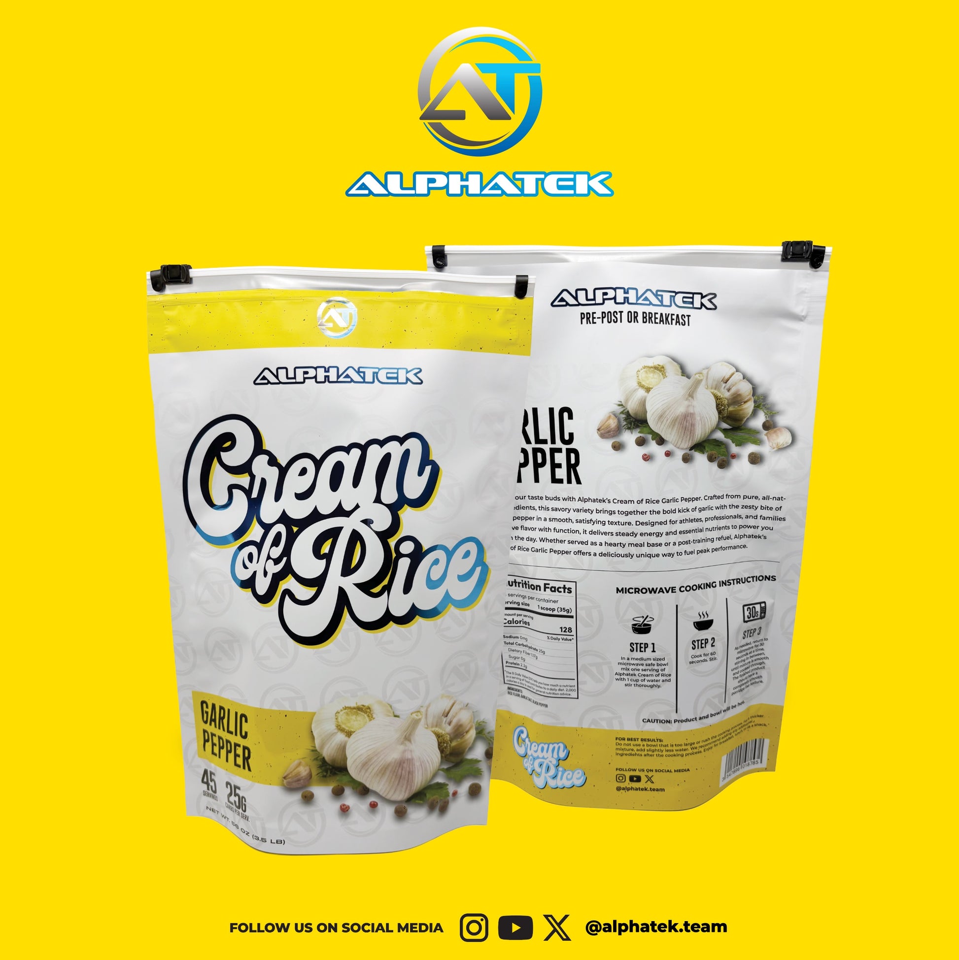 Awaken your taste buds with Alphatek's Cream of Rice Garlic Pepper. Crafted from pure, all-nat-ural ingredients, this savory variety brings together the bold kick of garlic with the zesty bite of cracked pepper in a smooth, satisfying texture. Designed for athletes, professionals, and families who crave flavor with function, it delivers steady energy and essential nutrients to power you through the day. Whether served as a hearty meal base or a post-training refuel, Alphatek's Cream of Rice Garlic Pepper offers a deliciously unique way to fuel peak performance.